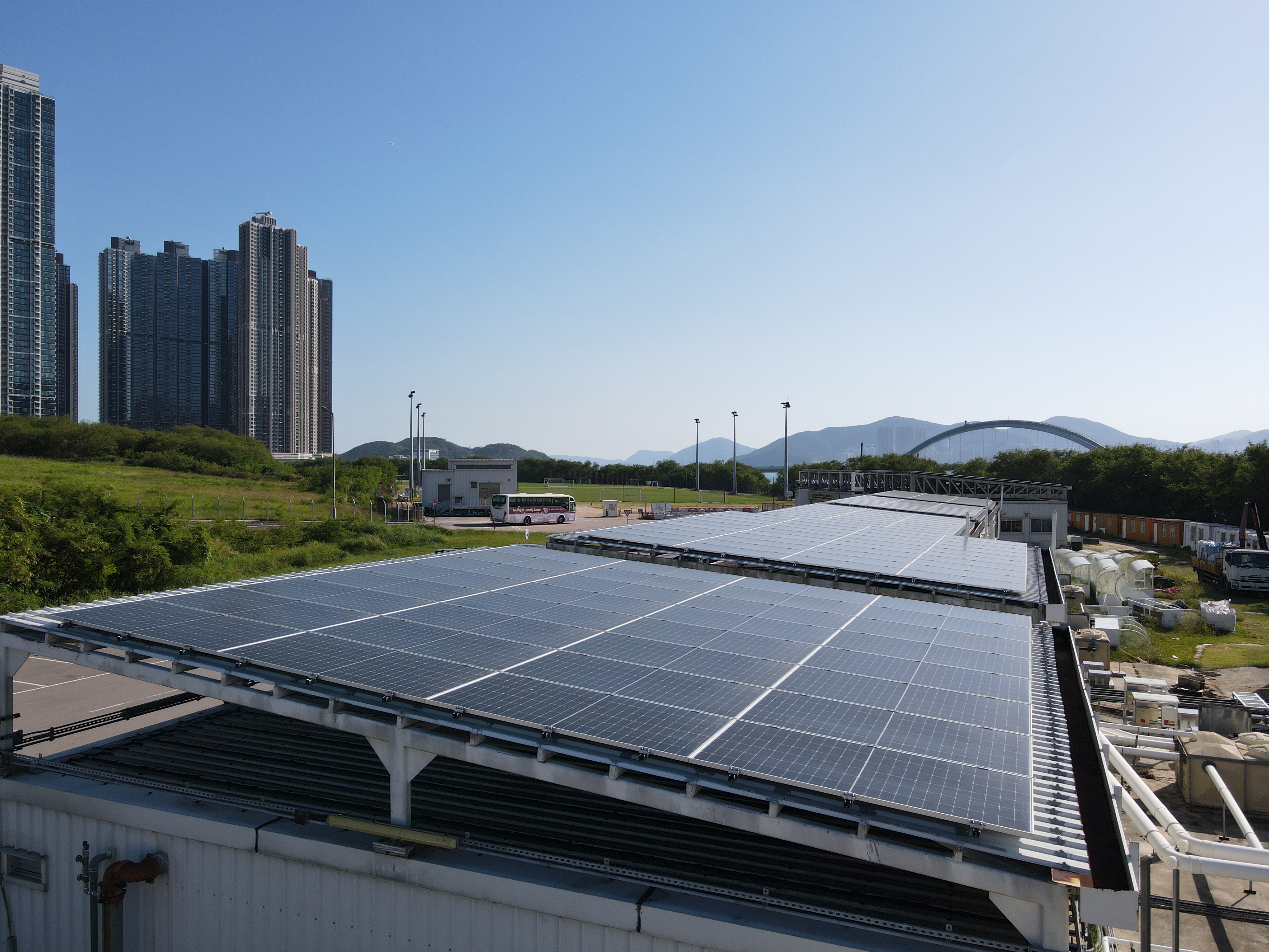 在9棟建築物的屋頂上 (包括體育館、更衣室、辦公室等)