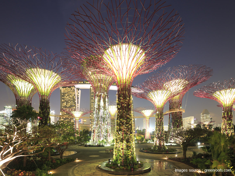 Many tourists think that Singapore is a small place with no remarkable scenery. However, in Singapore's Gardens by the Bay, there are 18 fascinating "supertrees", also known as solar trees. These supertrees add a unique touch of colour to this ordinary garden, especially during the night, they are breathtaking as if stepping into a future world. These trees not only collect rainwater but also generate solar energy. They also serve as ventilation ducts for two enormous conservatories in Gardens by the Bay.