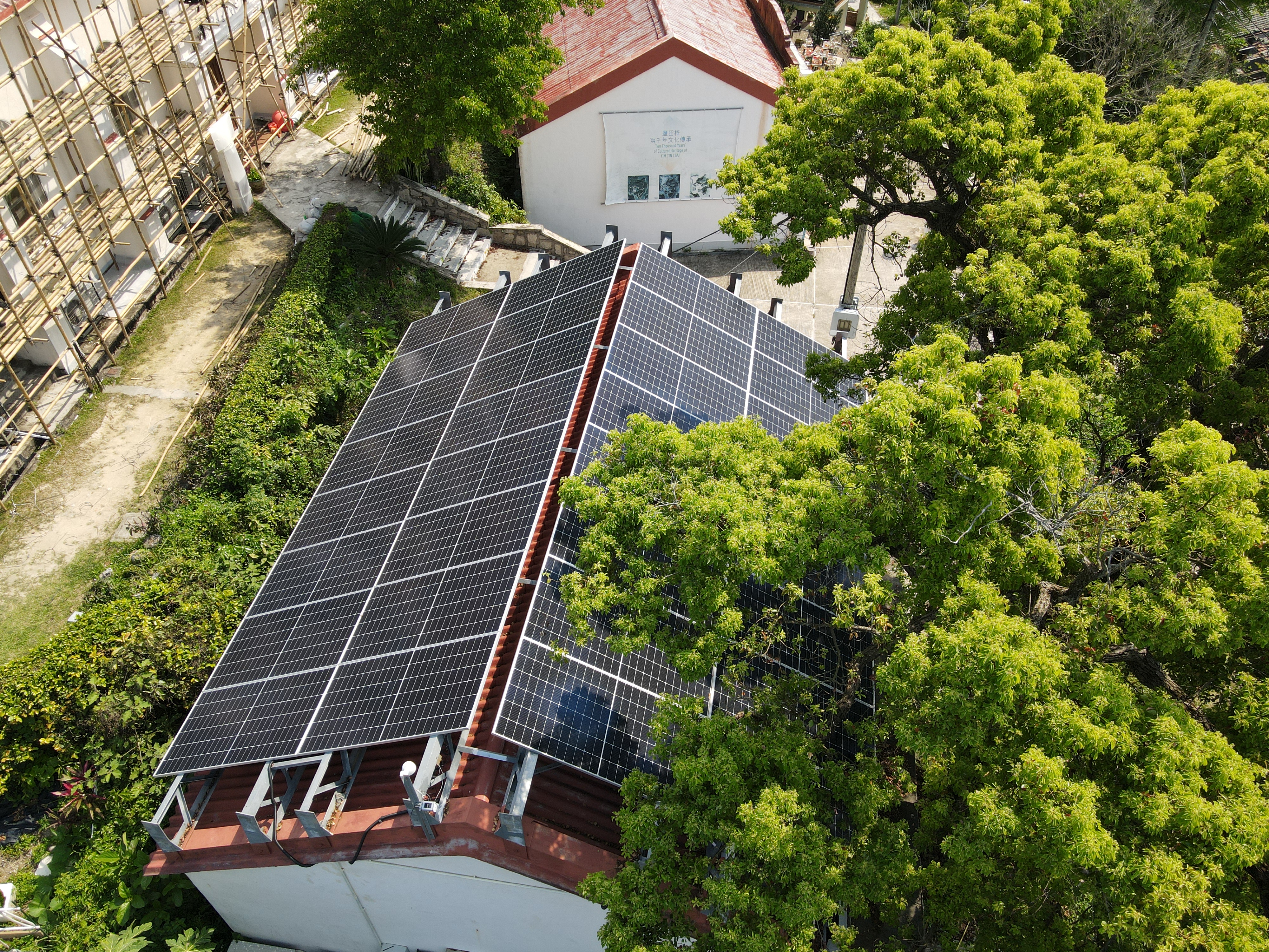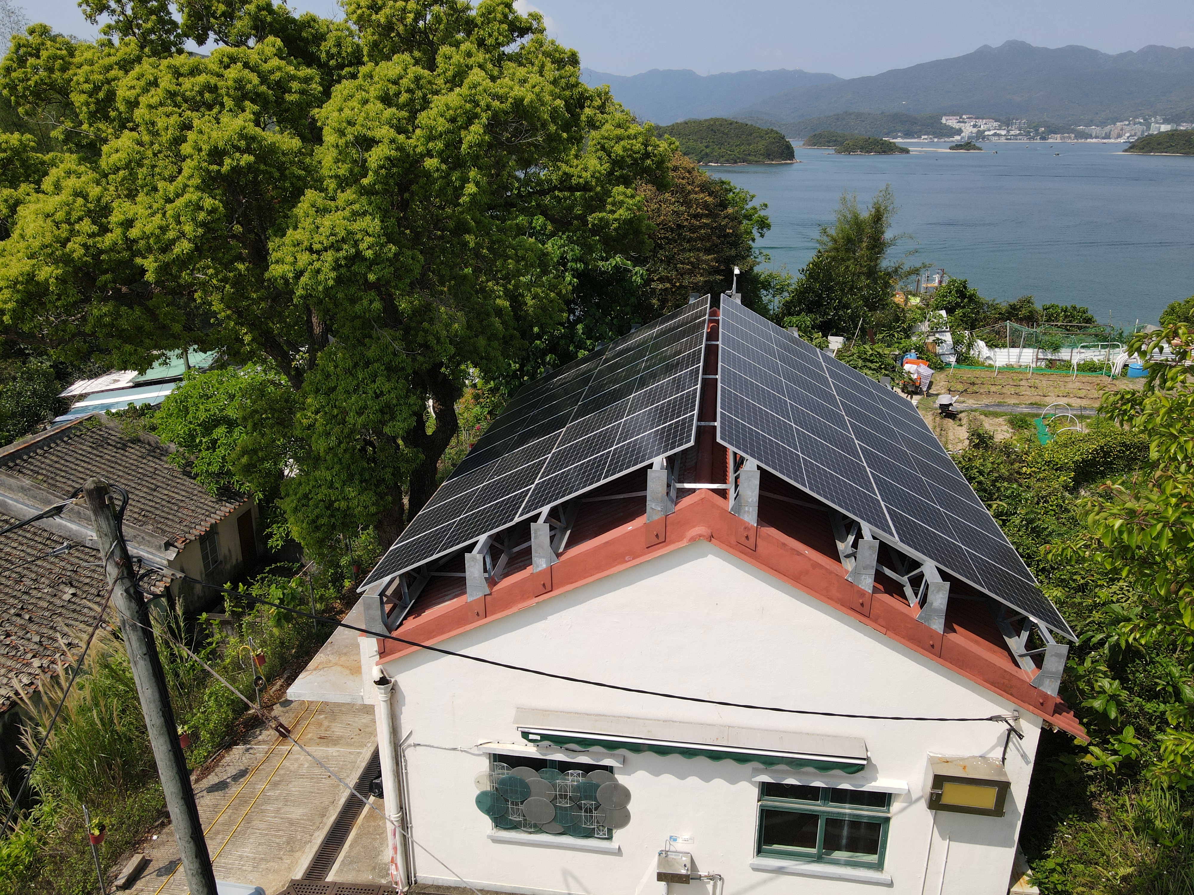 Solar panels were installed on the rooftops of the Pier’s Stone House and the rooftop of Ching Po Primary School’s New Classroom (Now Named Yim Tin Tsai Village History Centre). As both buildings have a long history, the stress points of the frames that support the weight of the panels are attached on the edges of the rooftop (instead of directly under the solar panels), in order to reduce the rooftop’s load. These frames require additional material for construction.