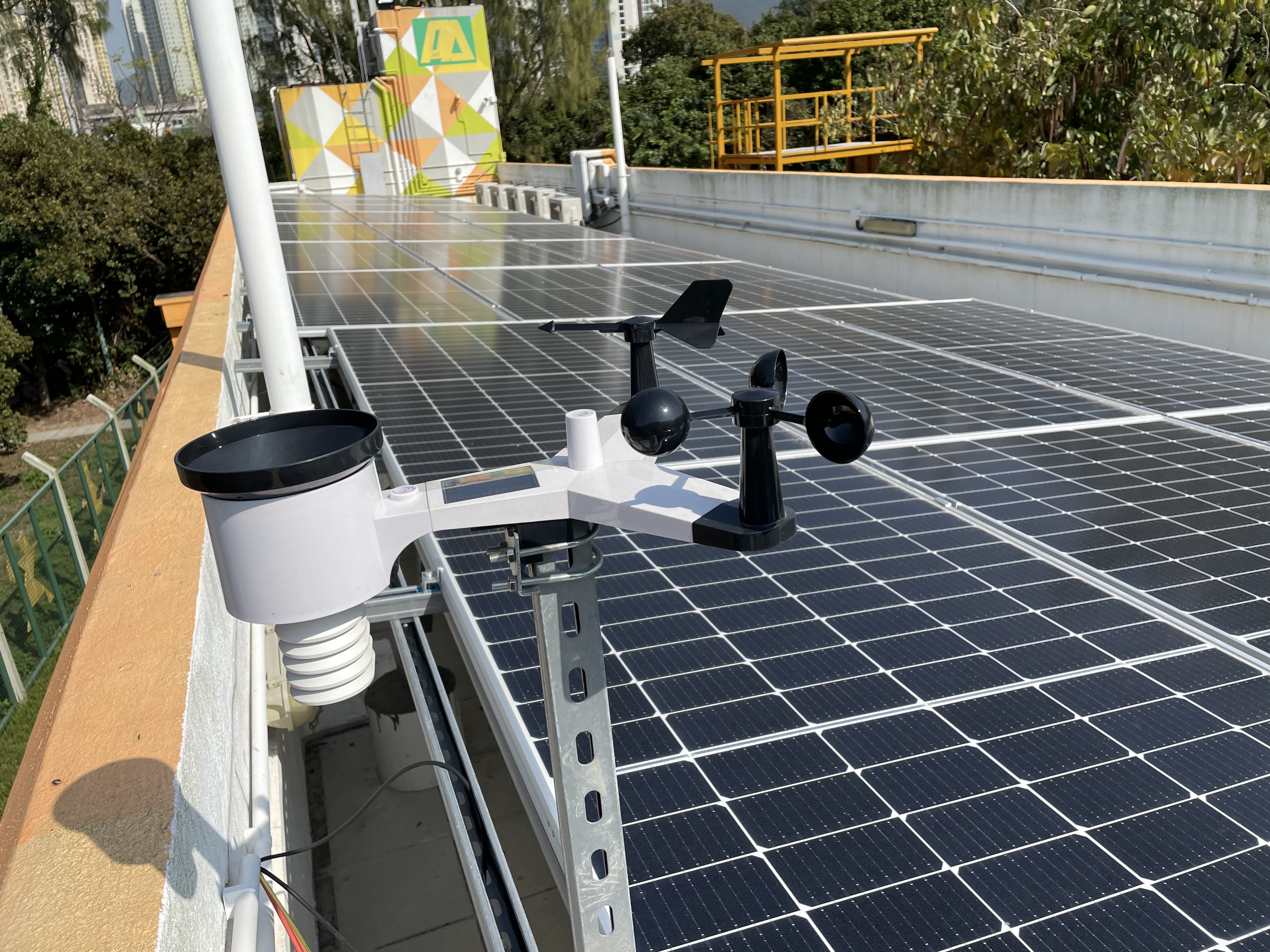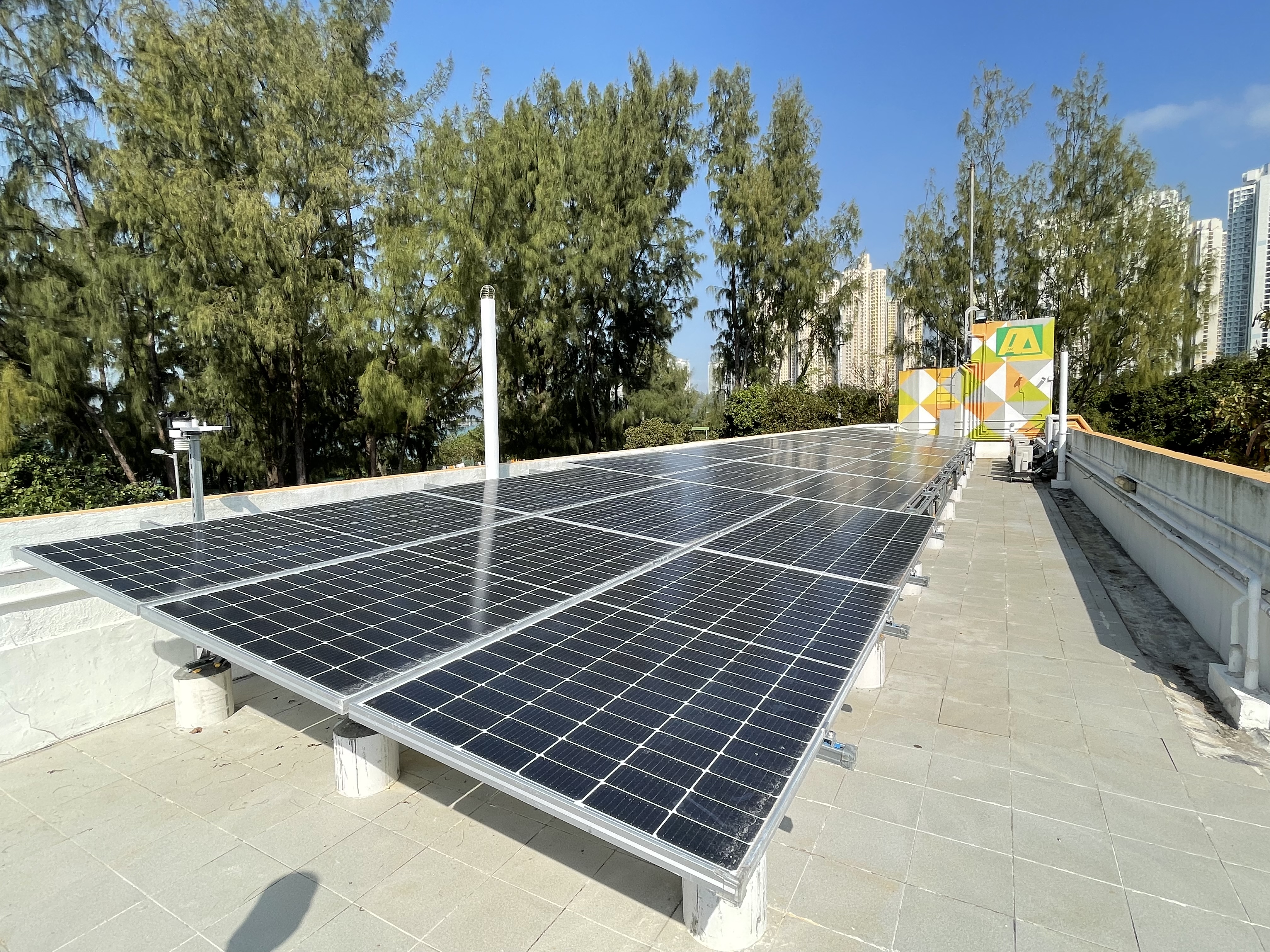 太陽能板安裝在營舍的天台上,可供近距離觀察。 除了接駁電網的太陽能光伏板外,天台還有一個小型離網光伏板,為閉路電視發電。